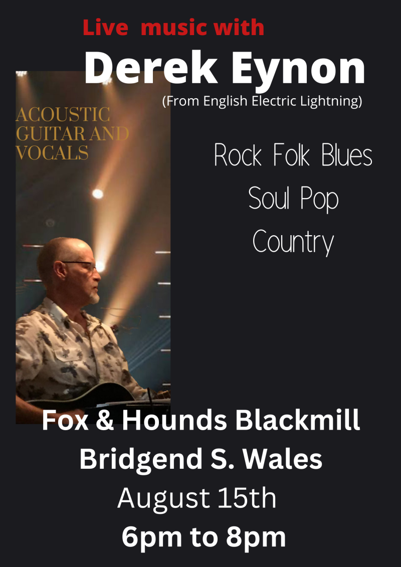 My name is Derek Eynon. Amongst the other musical things I am involved in, I am a solo singer/acoustic guitarist. I should perhaps point out that I don’t use backing tracks, loopers or anything, just voice and guitar and a bit of foot tapping.